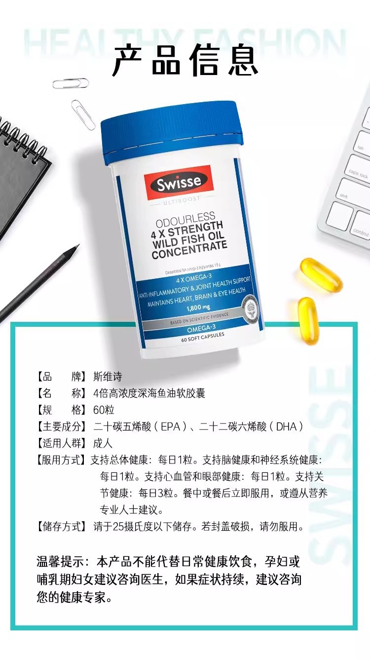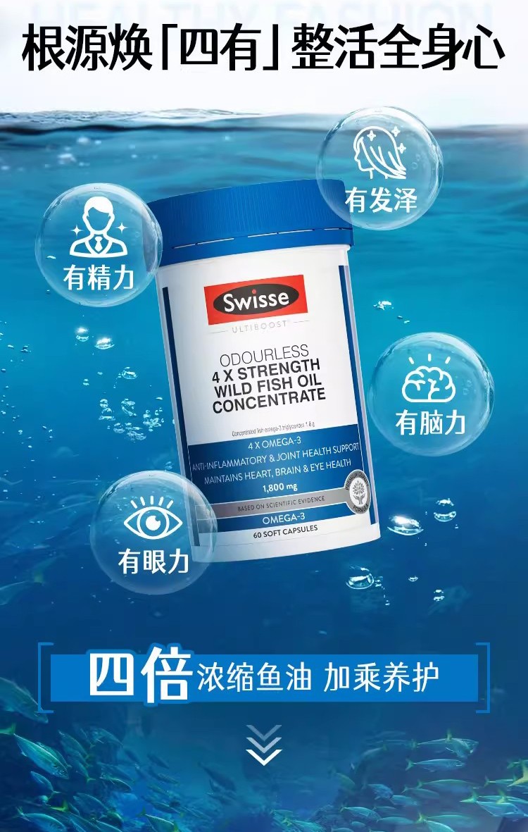 【融化不赔】Swisse四倍鱼油 60粒 365快递